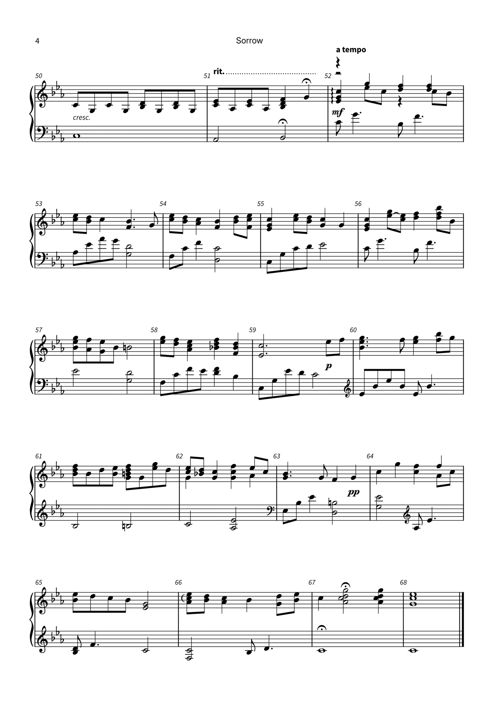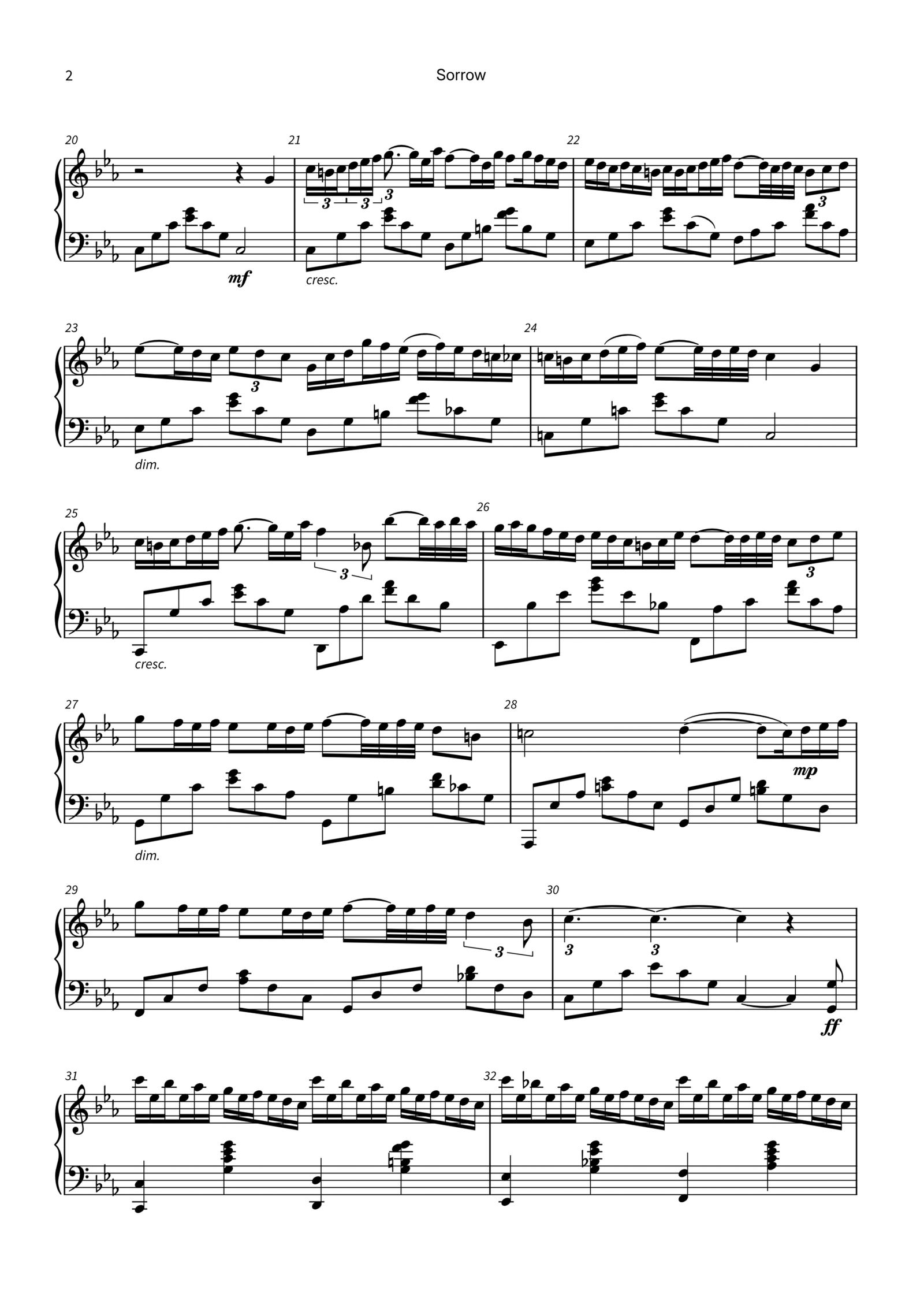 This work invites intimate contemplation and offers advanced pianists a challenging experience, both technically and emotionally. The sheet music guides the player through nuanced dynamics and expressive phrasing, demanding a mature interpretation.