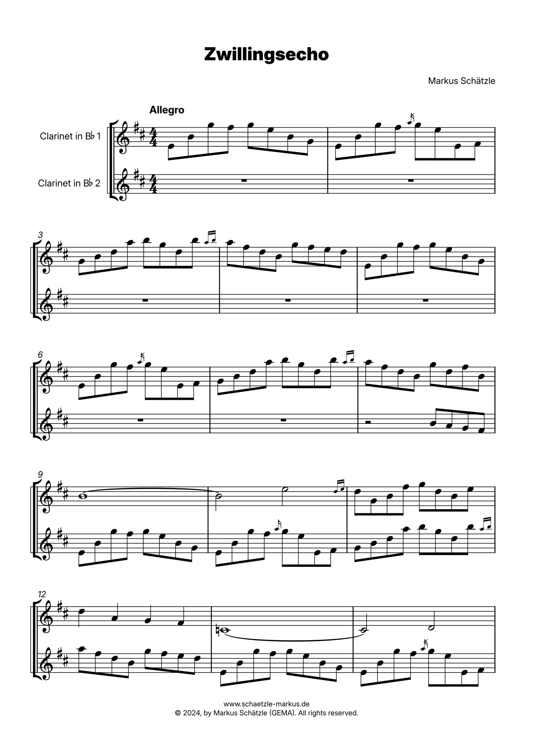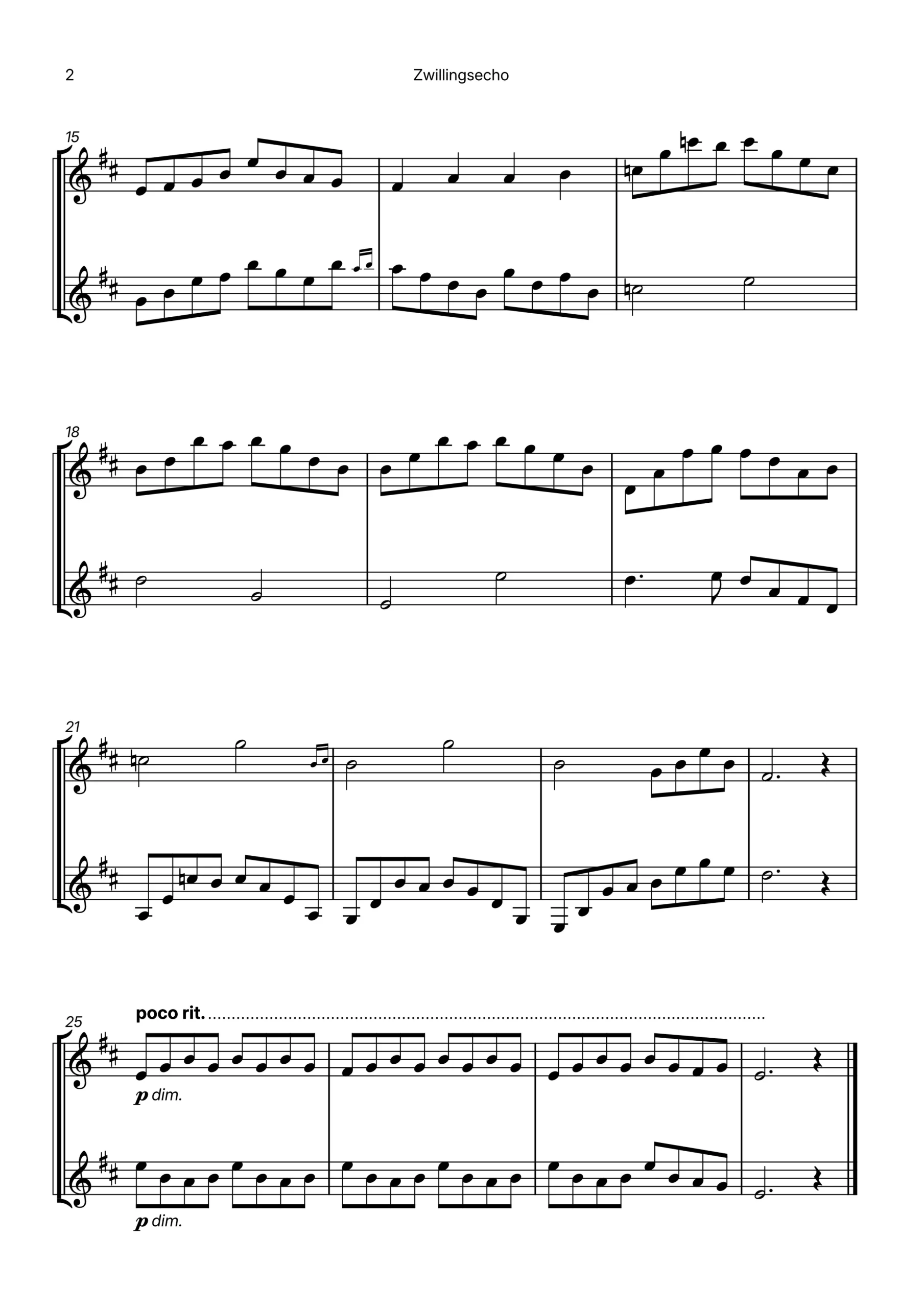 Perfect for performance or study, “Zwillingsecho” is a brief exploration of melodic dialogue and unity.